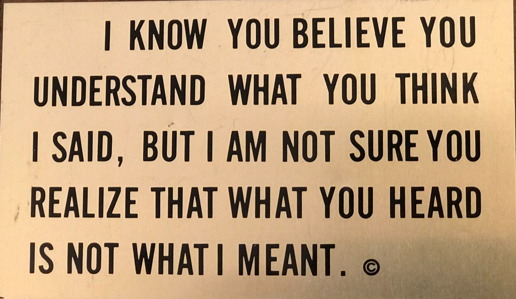 Communication has long been an interest of mine. I have spoken about it, written about it, and even fussed about it! I have often told audiences that most of us think we communicate well, when in fact, very often we do not. Too often we are communicating without thinking through what the other person needs and/or wants to know, for we are too focused on what we want to say! This is such an important topic that I could spend a year’s worth of blog posts on the different aspects of it. But I will limit myself to the communication particulars most on my mind at the moment.