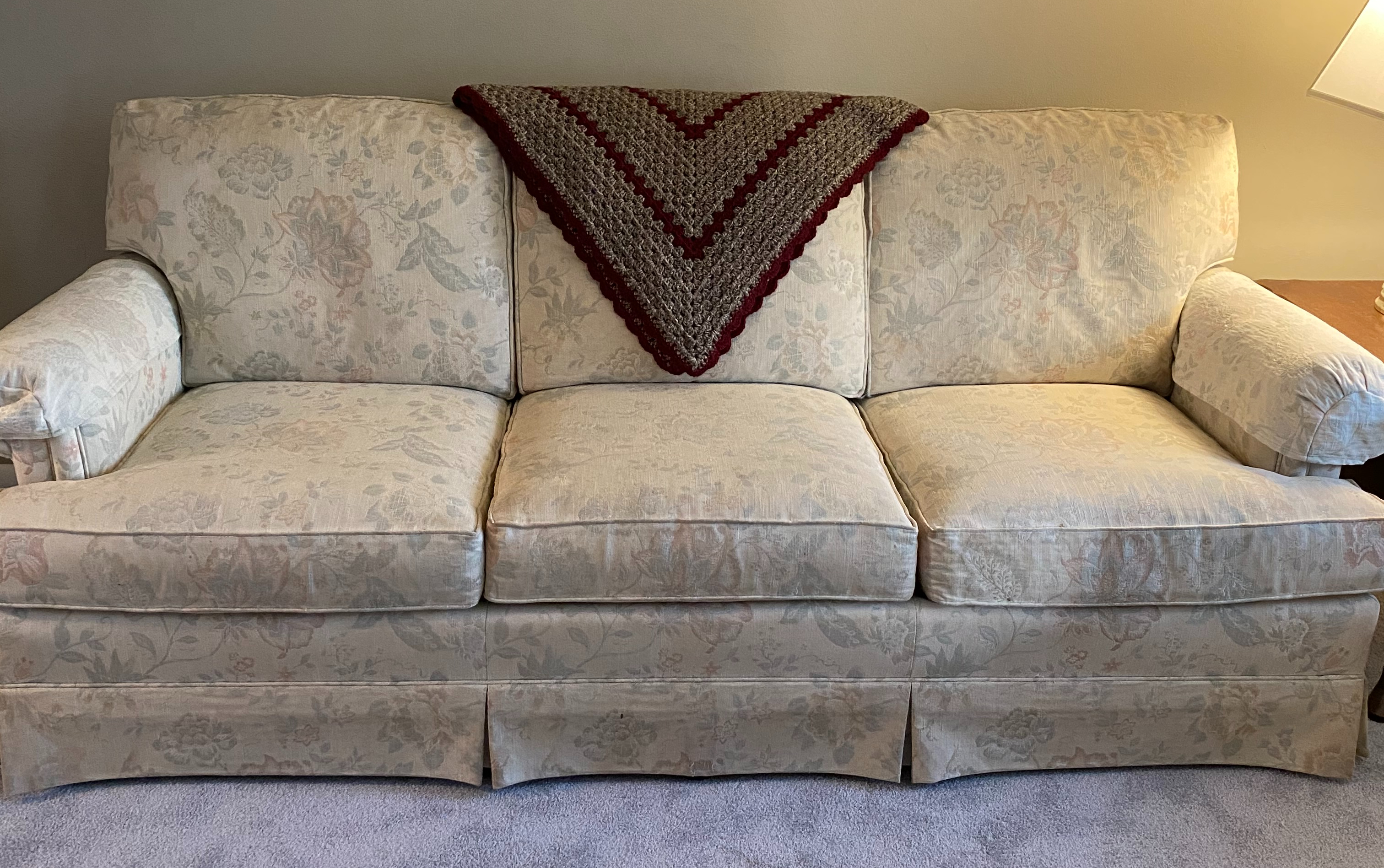 After the family took what items we wanted, the rest was sold through an online auction. This week was pickup day for those who purchased items through the auction. It was also pickup day for me, since I asked for and was given his sofa, two club chairs, and an ottoman. While I do not know when I will recover these items and where I will use them, I wanted them. I remember when Uncle B and Aunt Evelyn purchased these thirty-three years ago, and they hold much sentimental value for me, more than anything else he had. I will enjoy having them with me, literally and figuratively. For now, they are housed in my storage shed, where they can stay until the time is right for their repurposing.