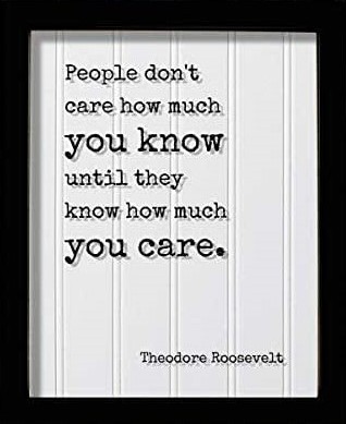 Someone wise (attributed to President Theodore Roosevelt) once said, “People don’t care how much you know until they know how much you care.”