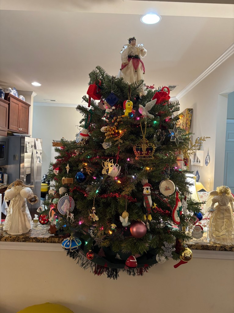 Now, about our 2025 Christmas tree. When my local family (specifically MoMo and Lolly) knew that Mike and I would be in town for Christmas after all, and we did not have a Christmas tree, they brought us one! Lolly said It was MoMo’s idea, but she was in Canada for the holiday. So she enlisted Lolly to get us a tree. Lolly showed up at our front door with a partially decorated tabletop tree! It was beautiful, and still is!! I am so thankful for their thoughtfulness. I thoroughly enjoyed completing decorating the tree, and have so enjoyed having it as a bright spot while Mike and I recovered.